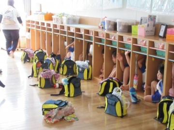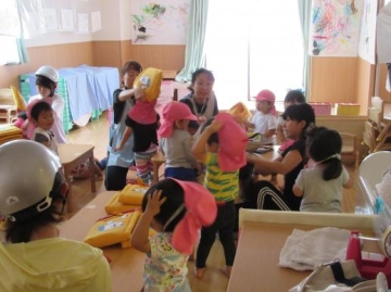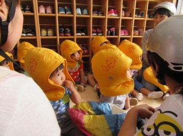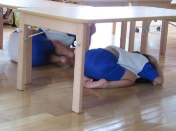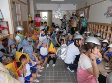 ガタガタ・ドンドン・・の大きな音と共に各部屋では、年齢に応じた避難をし、保育士の指示のもと行動していた子どもたちです。