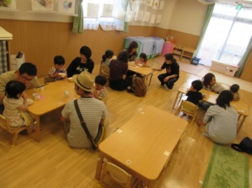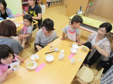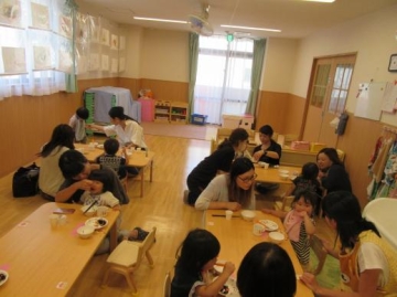 6月12日・13日・14日の三日間2歳児クラスの保護者が保育園に来て、公園で遊んだ後一緒に給食を食べました。