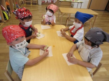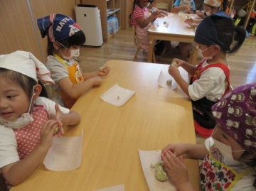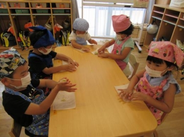 3時のおやつ”ごまくっきー”を自分たちで形を作りました。