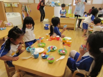 小麦粉ねんど・ままごと・プラレールなどコーナーに分かれて楽しみました。