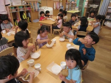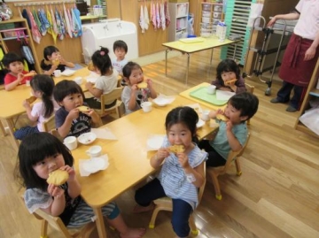 焼きたては「あつい!・・・といいながらも満足気に食べていた子供たちでした。