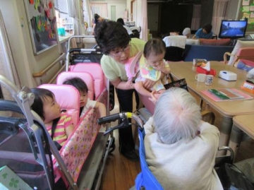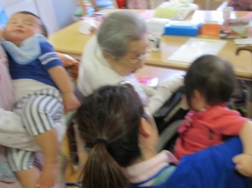 「かわいいね~!」 とおばあちゃんたちに言ってもらってじ~っと見つめていた子どもたち・・・!