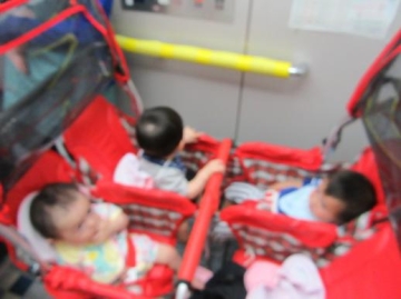 4人・3人乗りのバギーで室内に入り、いつもと違う雰囲気にちょっとびっくり!!の様子・・・