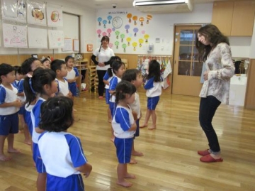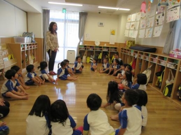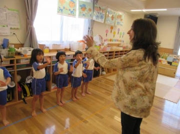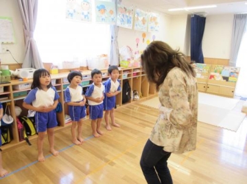 3.4.5歳児の子どもたちが嬉しそうに「ハロ~!」と挨拶をしていました。