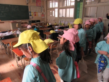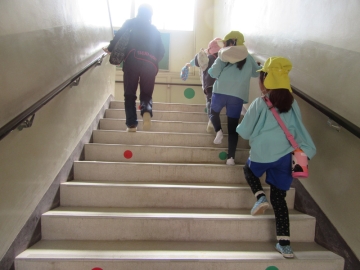 1年生の教室へ行くのに広い校庭や長い廊下・階段など見学しながら行って来ました。