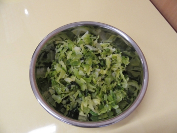 ちぎったキャベツは給食の先生に調理していただきました。