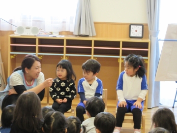 2月生まれの友だち(5人)をみんなで歌や手遊びをしてたのしみました。
