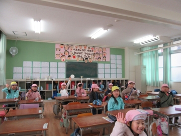 新町保育園 5歳児と一緒に堀江小学校の一年生教室を見学して来ました。