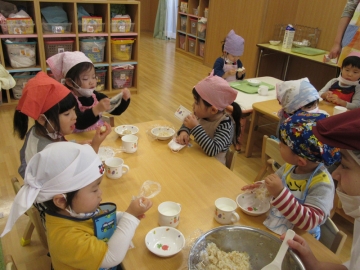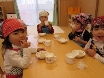 「ギュッ!」 「ギュッ!」といいながら作って、おいしそうに食べていました。