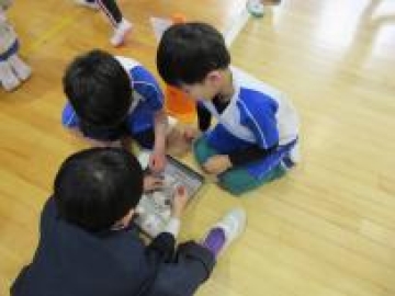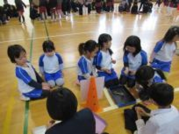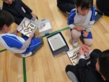 今日は、西船場小学校へ見学交流に行ってきました。又 靭幼稚園からも年長組さんが来ていました。