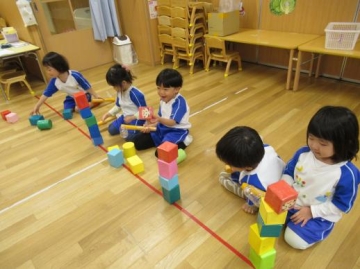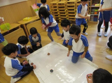 各クラスに、風船羽子板・だるま落とし・的あて・けん玉・コマ回しなど準備されているコーナーを順に分かれて遊びました!