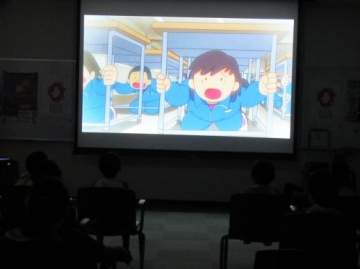 また、地震の映像やダイナキューブの映像を見ながら地震について気を付けることをいっぱい教えていただきました。