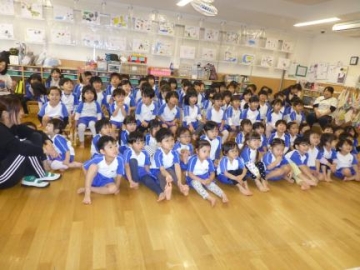 男性の先生でどの子も興味津々でニコニコ笑顔見せていた子どもたち・・・
