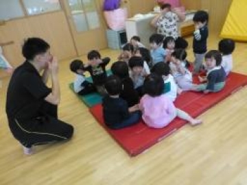 みんなで歌いながら丸い形が何になるかをみんなで当てっこして楽しみました。