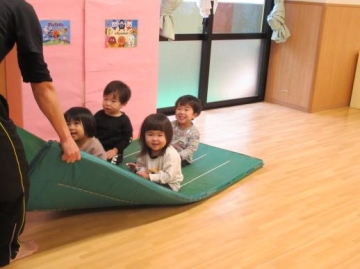 マットで風を送るところは、どの子もケラケラ~と楽しそうな笑顔を見せていました。