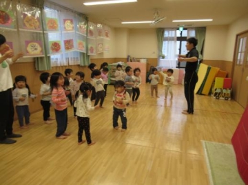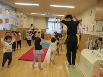 先生の話を真剣に聞いて体を動かせて楽しんでいました。