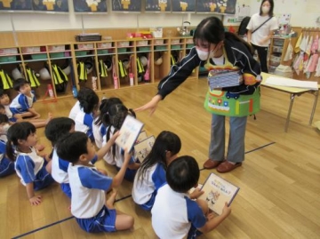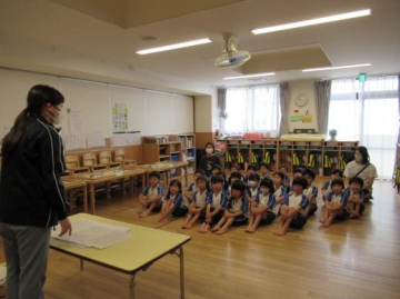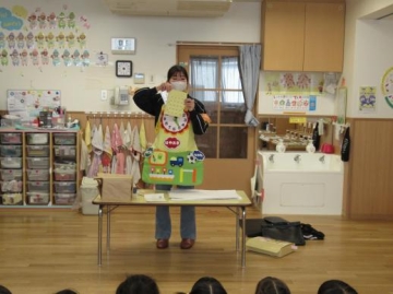 毎年市内に住む4歳児を対象に西区子育て支援室の保健師さんが、生活習慣を身に着けることを目的に行っている事業でさくら組の部屋に来ていただきました。
