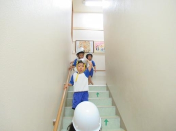 外階段は危険なので、内階段を使って玄関ホールへ子どもたちは避難しました。