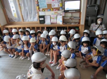 放送でがたガタガタ音が聞こえて少し不安がる子どももいましたが、泣くことなく避難することができました。