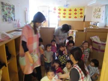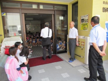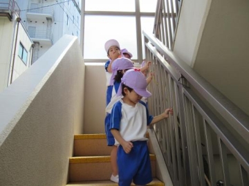 先生たちの消火器訓練もある中、子どもたちは集中して上手に口に手をあててくれんに参加していました。