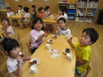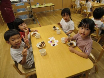 オーブンで焼いてもらったときは、みんな「わ~あ~」と大きな歓声を上げてよろこんでいました。