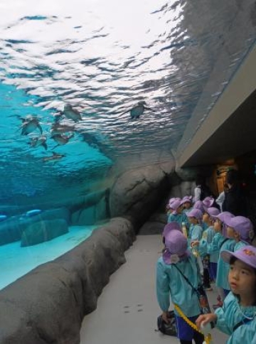 ペンギンが元気に泳いでいたり、鳥の世界では大声でなく取りに驚いたり・・