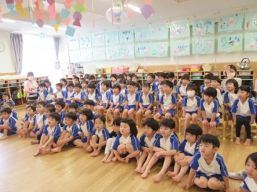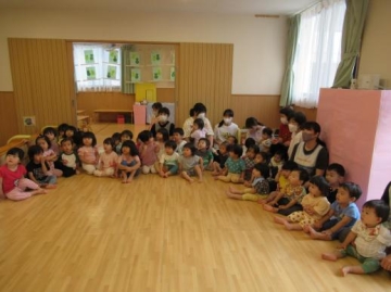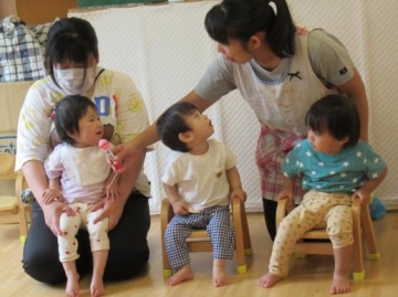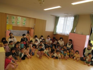 6月のお楽しみ会を 乳児・幼児に分かれて、6月生まれの友達をみんなでお祝いしました。