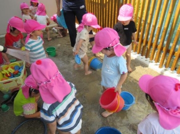 水や泥に抵抗のある子ども達もいましたが、友達が楽しそうに遊んでいる姿を見ながら本人たちも喜んでいたようです。