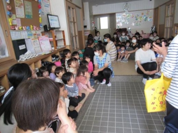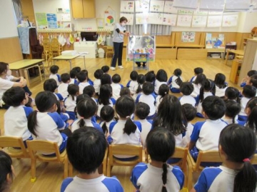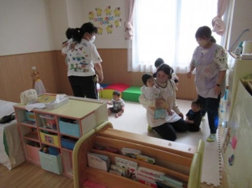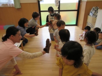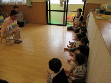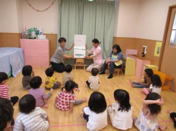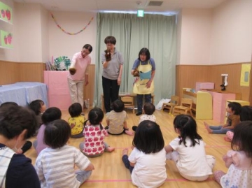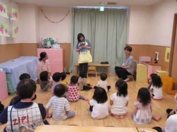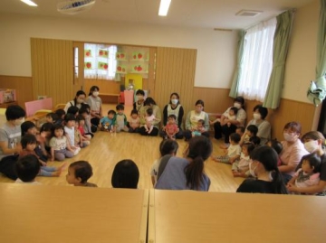 各年齢に応じた内容を選んで頂き、みんなとても集中して聞いていました。くまさん人形で挨拶してみんなに話しかけて歌っていただいたのが楽しかったようで子ども達の表情もにっこり・・・いい雰囲気で過ごせました。