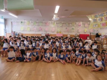 4月に誕生した子ども達をパネルシアターを見たり歌を歌ったりしてみんなでお祝いしました。