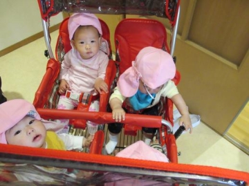 乳児は、♪はたらくくるま♪ 幼児は ♪きぬさや君とベイナスくん♪ のペープサートを見てそれぞれに楽しみました。