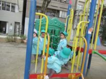 今日は、第3園保育園のいるか組さんと土佐公園まで手をつないで散歩に行ってきました。