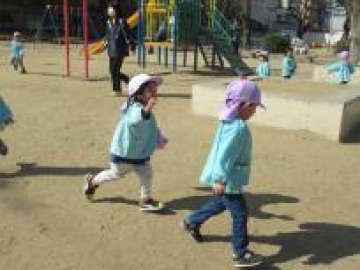 お天気も良く公園で帽子取りゲームをして思い切り体を動かせて遊んできました。