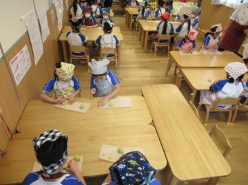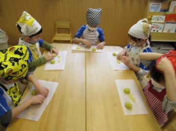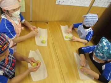 ひまわり組さんが3時のおやつ ”アップルポテト”の一部を作ってみました。
