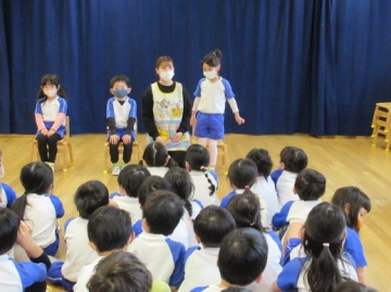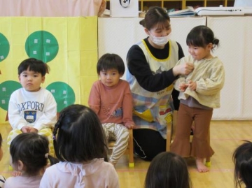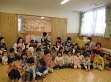 3月お楽しみ会を乳児・幼児に分かれて2,3月生まれのともだちをみんなでお祝いしました。