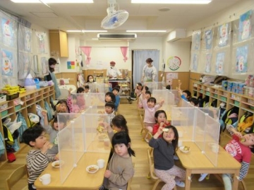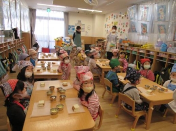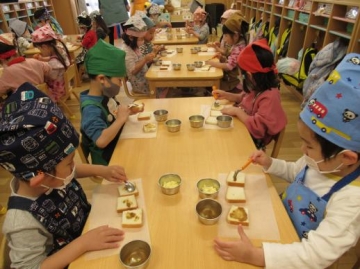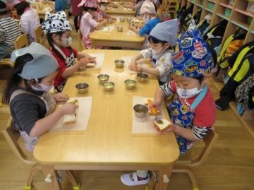 給食の先生にオーブンで焼いていただき みんな美味しそうに食べていました。