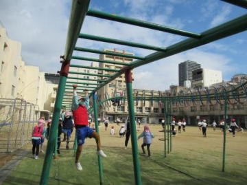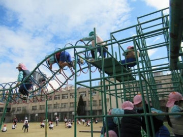 また、運動場の雲梯やジャングルジムで遊んできました。