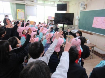1年2組に案内され、歓迎会を開いて頂きました。しっかりした挨拶から始まり、クイズやじゃんけんゲームまで一緒にさせて頂き楽しく参加できました。
