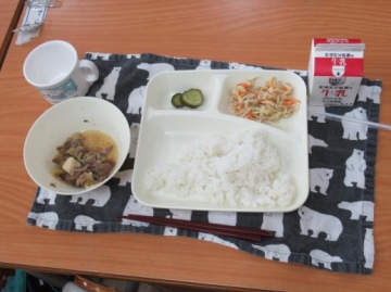 今日は、早くに給食をたべて、日吉小学校へ給食見学に行ってきました。