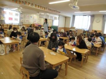 今日は3歳児クラスの保育参加がありました。