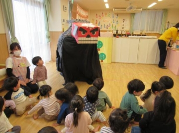 お楽しみ会の後、獅子舞いが登場し、みんながこの一年元気で健康に過ごせますように・・・と獅子舞にお願いしました。