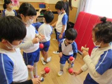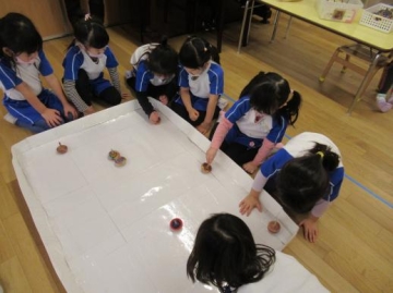 大きいクラスは、絵馬を作ったりコマを回したり、けんだまやあやとりをしたり・・楽しみました。