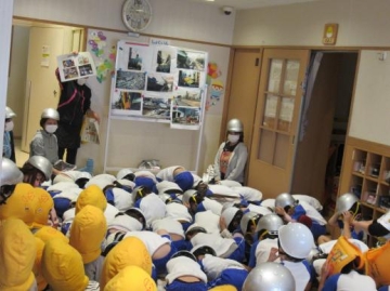 また、この月の1月17日は28年前に起きた”阪神・淡路大震災”でした。その当時の写真を見て話を聞くことで地震の恐ろしさを実感する事ができました。当時の様子を理事長先生からも話をして頂きました。今後大きな地震が来ても大人の指示に従って避難することを約束しました。