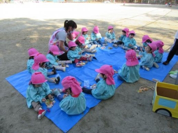 おやつを外で食べたことがうれしかったのかみんな美味しそうに食べていました。