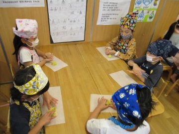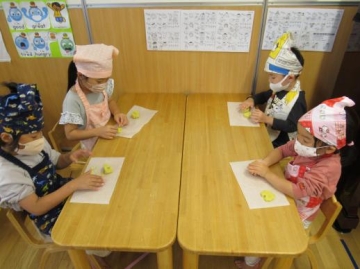 3時のおやつ ”スイートポテト”をポテトの生地を自分たちで形を作りました。