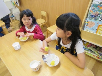 「あついで~!」「おいし~」・・・等本当に美味しそうに食べていました。
