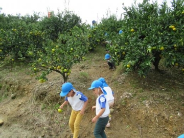みかん山では、ミカンがいっぱいできている中から甘い~というより、大きなみかんを選んでいた子ども達~