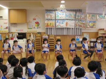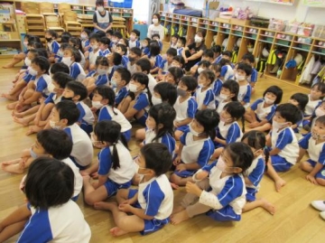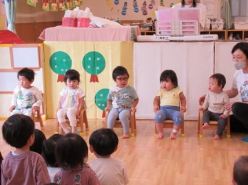絵本 ”さつまのお芋”を乳児も幼児よんでもらい真剣に見ていた子ども達・・・
