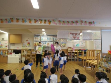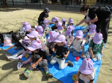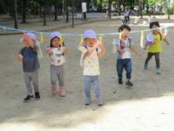 公園では、おやつ取りゲームやしっぽ取りゲームを楽しんできました。
