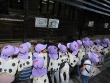 自分のコップを入れたリュックを背負い、途中動物病院のアルパカを観ながら歩いていきました。